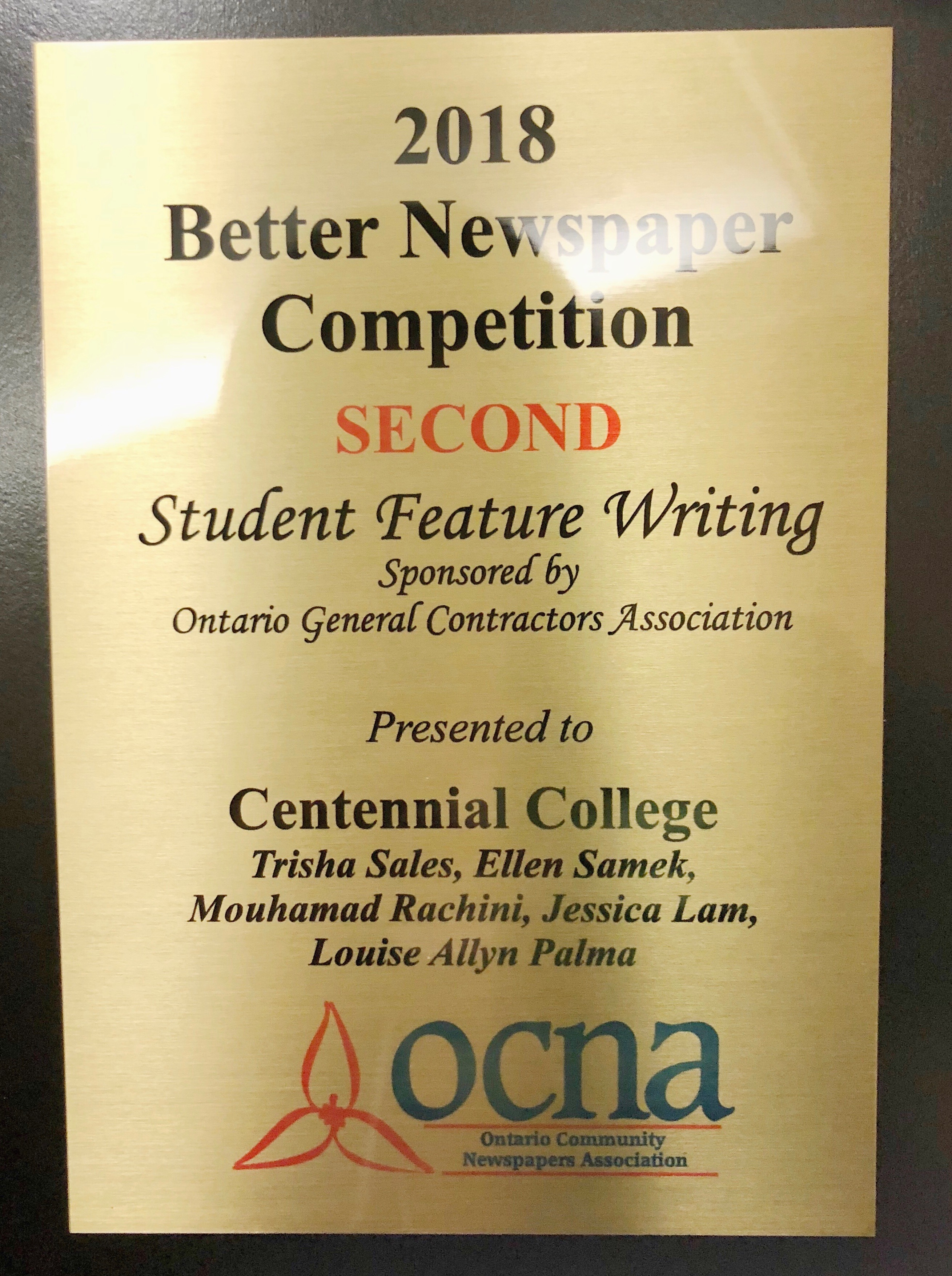 The collaborative story I worked on, ‘How Syrian refugees are adjusting to their new lives in Toronto’ , won a Student Feature Writing award at the 2018 Better Newspaper Competition as part of the Ontario Community Newspaper Association.