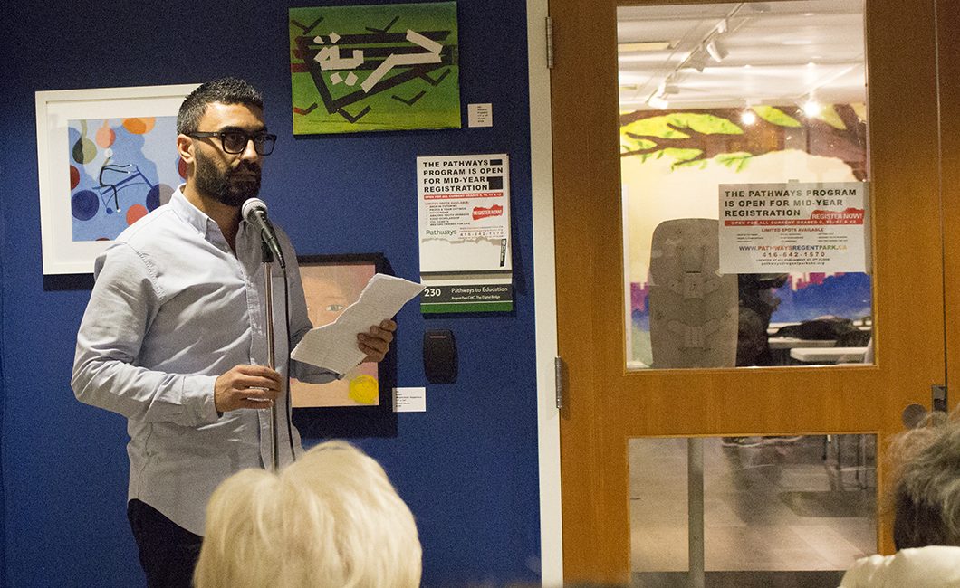 Ousama Alkhatib (pictured on the right), Musa Talluzi, Ghina Abdulwahed, and Reem Alhaj are four Syrian newcomers who had their art displayed at the Syrian Night: Our Art, Our Stories event at Daniels Spectrum last April.